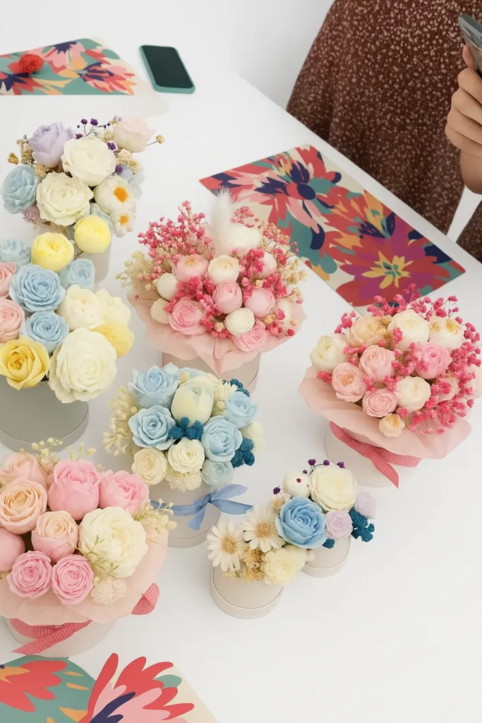 Sumérgete en el arte floral más original con nuestros talleres de centros decorativos hechos con flores moldeadas en cera aromática. Una experiencia creativa y sensorial que no te dejará indiferente.
