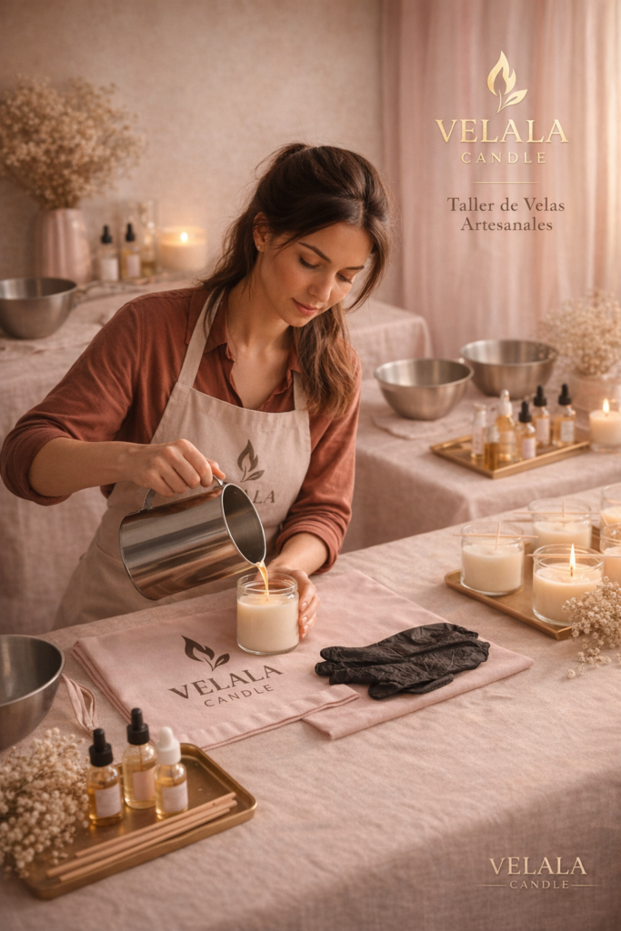 Después elaboraremos una vela artesanal que vertiremos en el envase creado por ti, aprendiendo las bases del proceso: temperatura, vertido y acabado profesional.